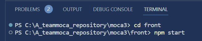 명령어 : npm start