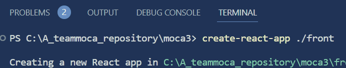 예시) create-react-app ./front ( front 폴더 속에 생성)