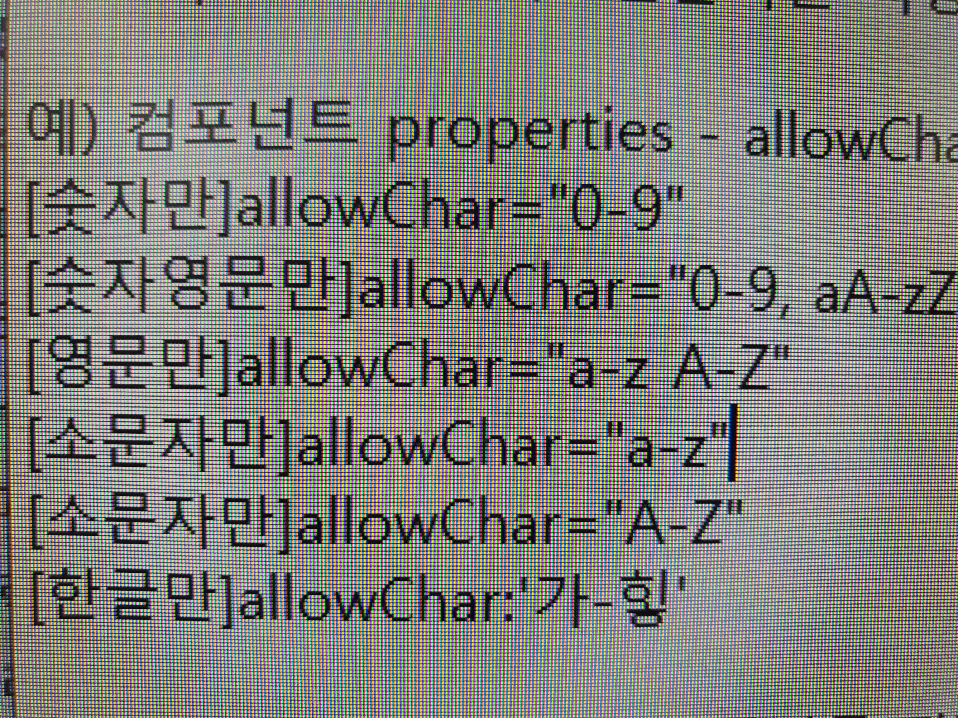 websquare에서 입력을 허용할 문자를 정의할수 있습니다