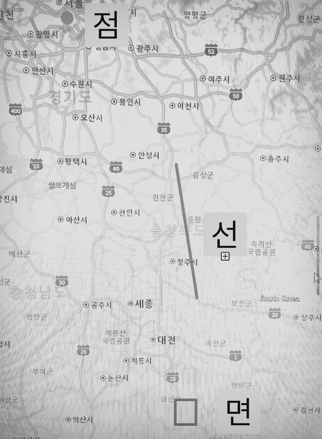 지도상에 점, 선, 면의 객체가 생성된걸 확인하실 수 있습니다