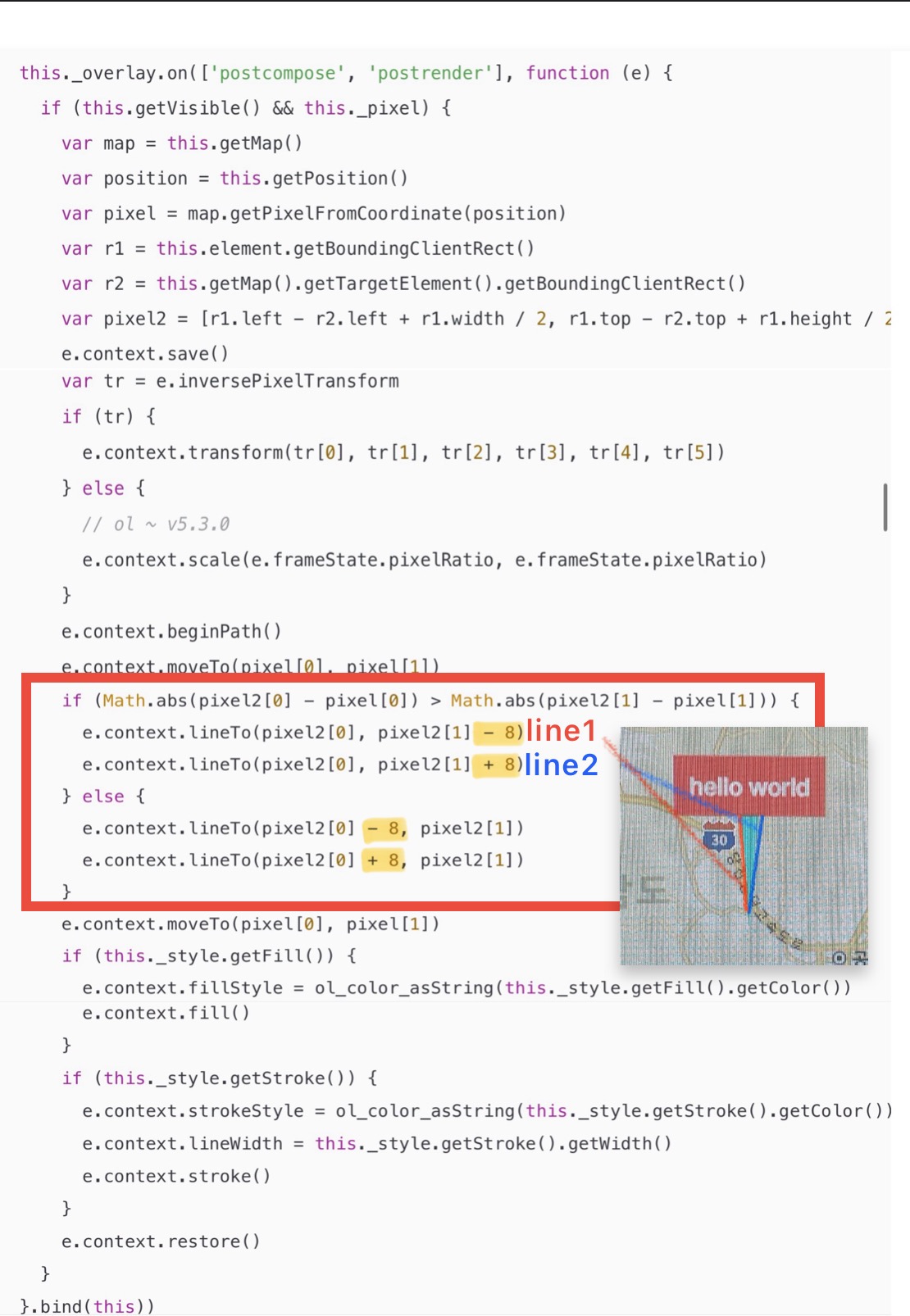 말풍선꼬리는 두가지 선(line1, line2)을 그어 말풍선꼬리를 표기하게 됩니다.