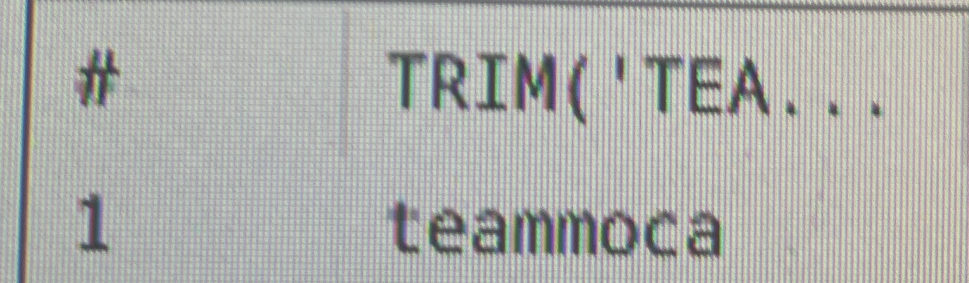 SELECT TRIM(' t e a mmoca ') FROM DUAL;