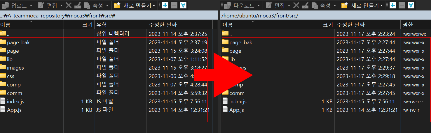 우선 저희는 winSCP프로그램을 이용해 파일을 옮겨서 적용하는 방식을 이용하고 있습니다.