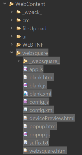 웹스퀘어에서 사용되는 모든 정적리소스들이 관리되는 디렉토리입니다.(image, css, js, config.xml)