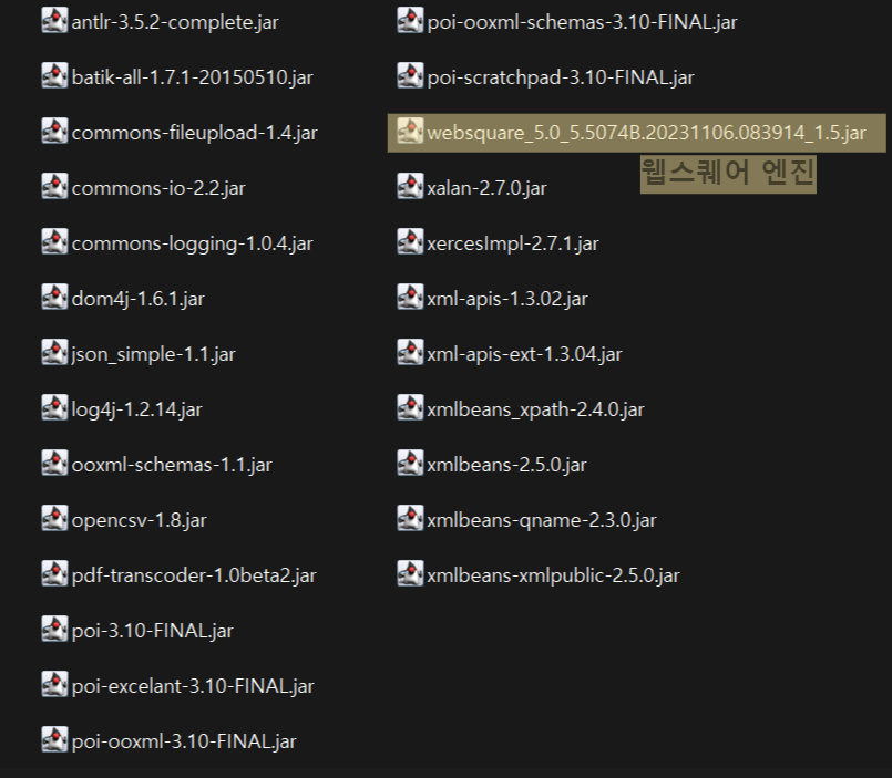 다) websquare.jar와 기타 라이브러리 10여개정도