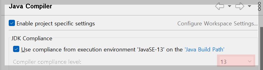 Java Compiler와 Java Build Path의 java버전이 동일하게 맞춰주면 해결