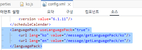 엔진이 언어코드별로 호출할 서비스를 config.xml에 등록한다.
