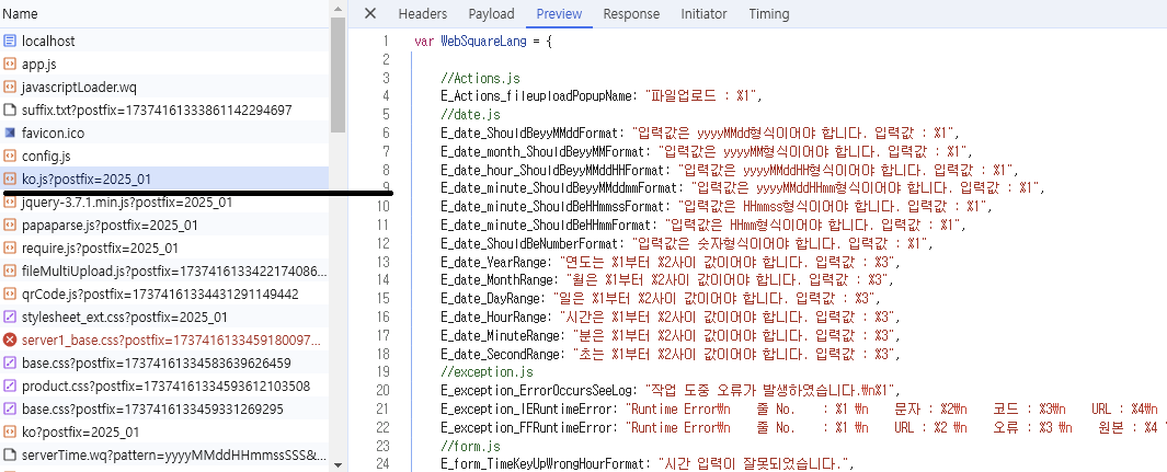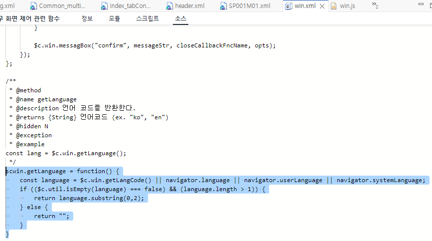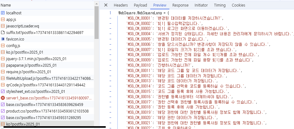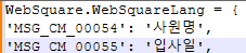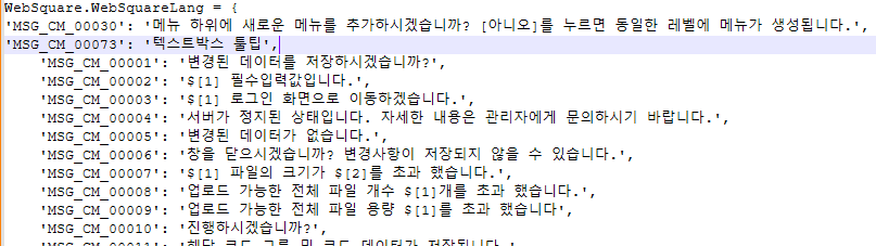 - 웹스퀘어메세지 ( WebSquareLang js오브젝으로 관리됨)