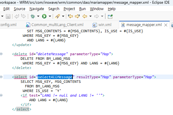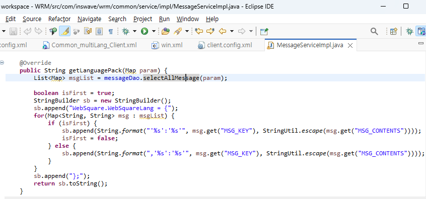 이 세팅만되면 시스템관리메세지와 , 웹스퀘어메세지를 엔진이 로딩시 자동으로 가져와서 js오브젝으로 관리함.
