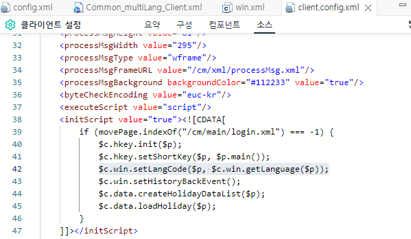 config.xml에서 initScript로 모든페이지 초기세팅시