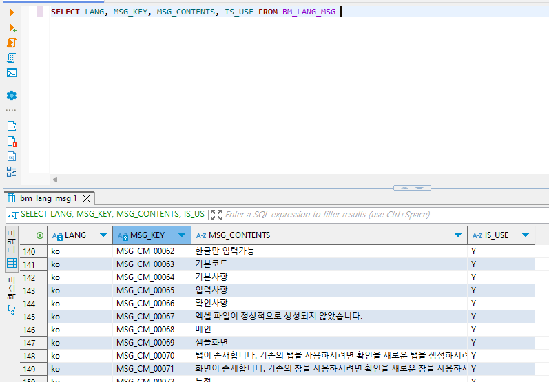 요컨대 메세지는 '시스템관리메세지'와 '웹스퀘어메세지' 두종의 메세지를 가져와서