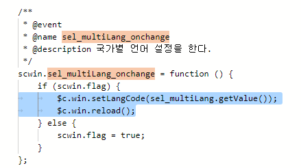 언어코드(수동으로 선택한 언어 또는 브라우저의 기본 언어 코드)를 세팅한다.