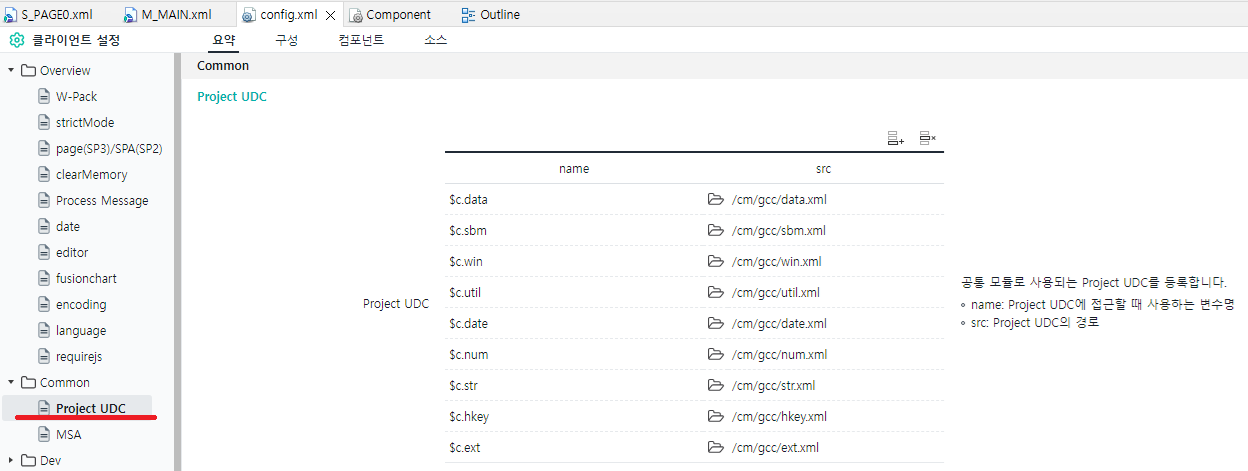 Project UDC(즉 설정에서의 projectCommon)도 설정되는것이 좋다.