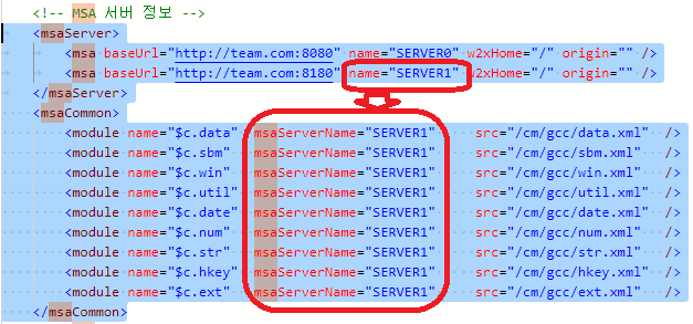 MSA server설정에서 name값은 키가되어 다른설정에도 들어가므로 중요하다.